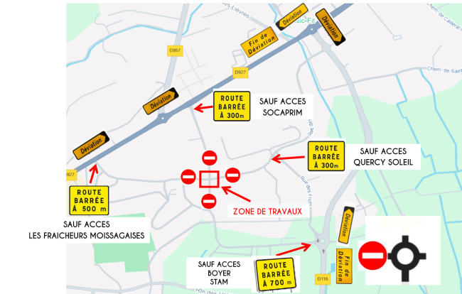 Afin de permettre la réalisation des travaux en toute sécurité, le carrefour concerné sera entièrement fermé à la circulation pendant toute la durée du chantier soit six semaines. Des itinéraires de déviation seront mis en place et clairement signalés afin de limiter au maximum les perturbations pour les automobilistes, riverains et professionnels. La Communauté de Communes invite les usagers à anticiper leurs déplacements dans ce secteur.