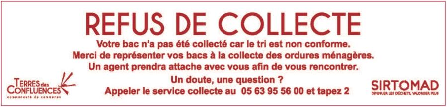 Les sacs noirs ne doivent en aucun cas être déposés dans la poubelle jaune (emballages recyclables). Leur présence entraîne le refus de collecte du bac concerné. De même, si votre bac contient plus d’une erreur de tri, dans ces deux cas un adhésif sera apposé sur le bac concerné et les personnes devront présentées leur bac à la prochaine collecte des ordures ménagères (bac marron).