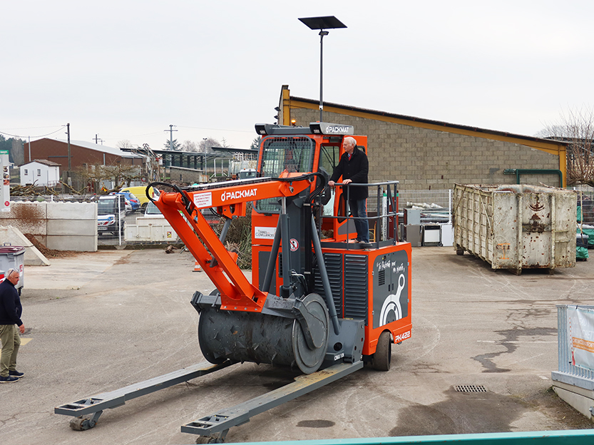 L’agent en charge de la déchetterie explique utiliser le compacteur au moins trois fois par jour. Son rôle est simple mais essentiel : il permet de tasser les déchets dans les bennes, augmentant ainsi leur capacité sans avoir à les remplacer plus fréquemment. Résultat : moins de rotations de camions pour évacuer les déchets.
